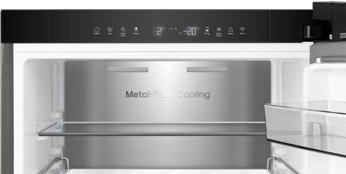 -MetalCooling – hátsó fal rozsdamentes acéllal van borítva, ami biztosítja a hűvös levegő egyenletes eloszlását belülről kifelé. A fejlett technológiáknak ez a kombinációja mindenkor ideális hőmérsékletet és páratartalmat biztosít