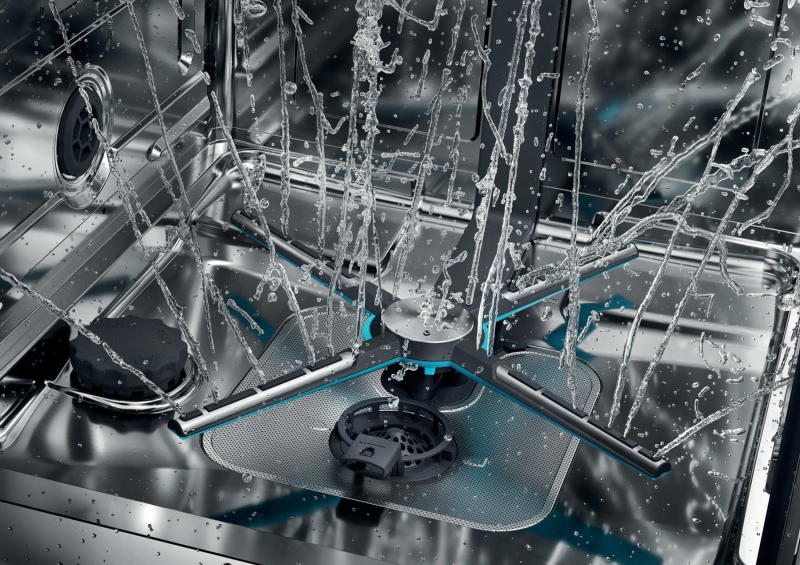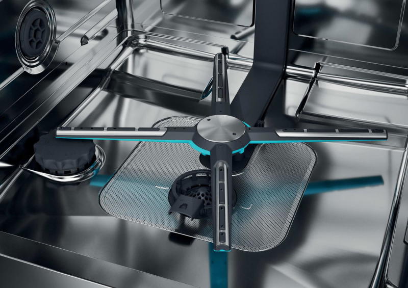 Az evőeszközfiókban található öt forgó fúvóka és a dedikált felső permetezés a legkisebb darabokra összpontosít. Az eredmény? Alaposan elmosott és csillogó evőeszközök beszáradt foltok nélkül.