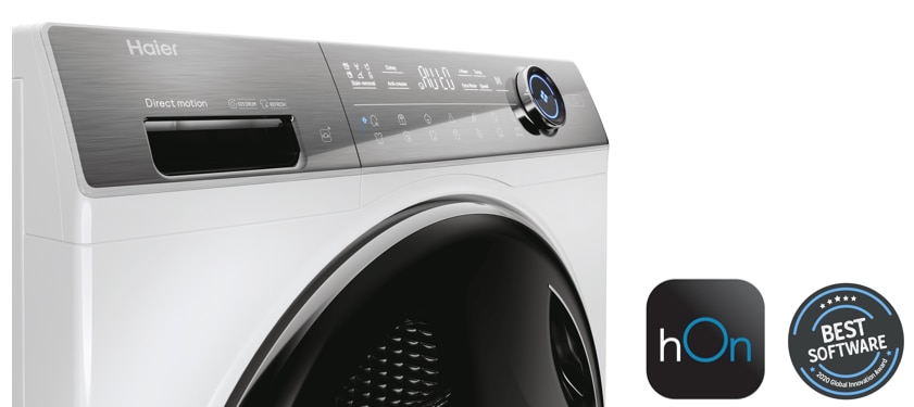 hOn APP: Az új és folyamatosan frissített HAIER alkalmazással távolról is vezérelheti és felügyelheti mosógépét. Több mint 60 speciális mosási programot javasol minden egyes textiltípushoz. Hasznos tippeket kínál a nehéz foltok eltávolításához, statisztikákat a mosógép hatékonyságáról és fogyasztásáról, valamint javaslatokat ezek optimalizálására.
