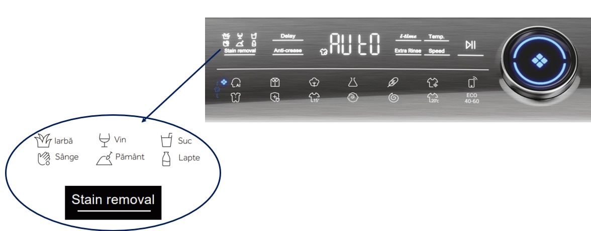 FOLTELTÁVOLÍTÁS: Egy gombnyomással kiválaszthatja a nehéz folt típusát. A Haier mosógép speciális funkciókkal és programokkal rendelkezik, amelyek kifejezetten az ilyen nehéz foltok eltávolítására szolgálnak.