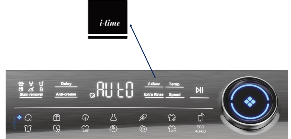 Az I-TIME funkció lehetővé teszi a mosási idő beállítását. Az idő a mosási folyamat igény szerinti befejezéséhez állítható be.