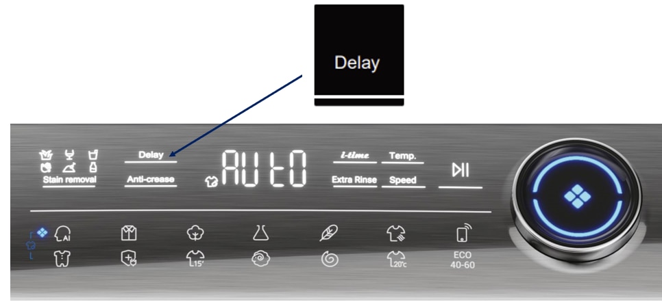 Késleltetés funkció*: A „késleltetés” gomb megnyomásával a késleltetést 30 perces lépésekben, legfeljebb 24 órás időtartamban állíthatja be. Például a „display off” 5:30 üzenet azt jelenti, hogy a kiválasztott mosási program vége 5 óra 30 perc múlva lesz. A szennyes a kívánt időpontban makulátlanul tiszta lesz!