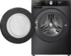A fekete színű, elegáns designú készülék letisztult vonalvezetésével kiemelkedik a hagyományos mosógépek közül. A széles ajtónyílás kényelmes ruhabehelyezést biztosít, míg a kompakt méret lehetővé teszi a mosógép egyszerű beillesztését a legtöbb háztartási környezetbe. Mindezek mellett az ergonomikus vezérlőpanel még intuitívabbá teszi a mindennapi használatot.