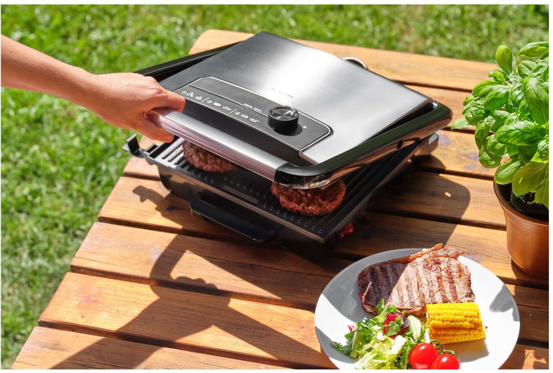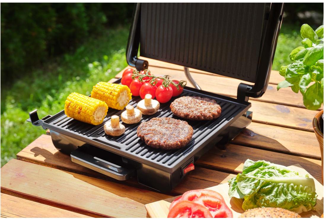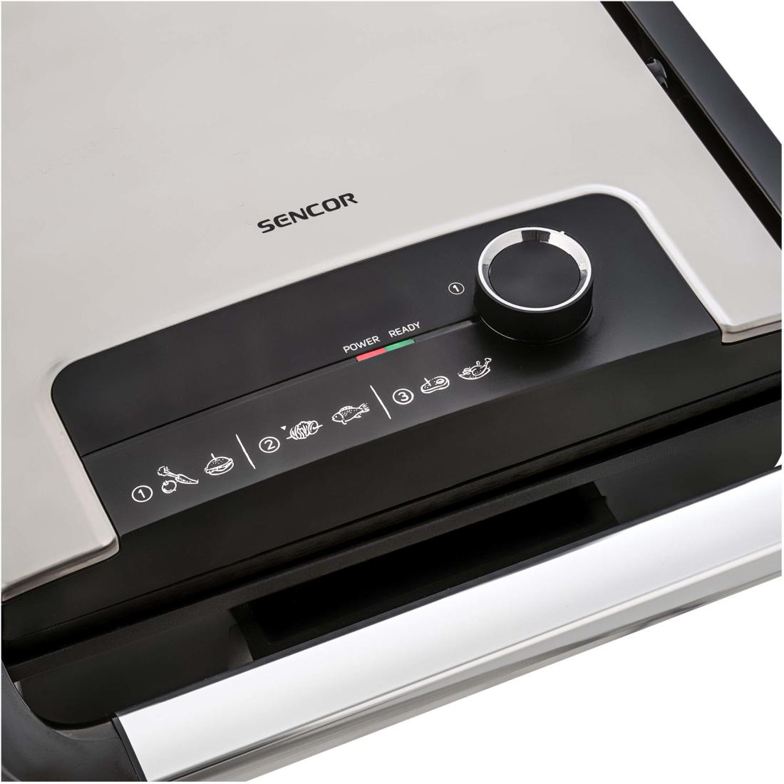 A Sencor SBG 3710SS többfunkciós elektromos kontaktgrill ideális segítő a mindennapi otthoni és szabadtéri grillezéshez. A kivehető, tapadásmentes felülettel ellátott grill sütőlapok tartalmaz, amelyek a legjobb eredményt biztosítják a szaftos steakek, kolbászok, halak, zöldségek és gyümölcsök sütésekor. A grill teljesen kinyitható, így megduplázhatja a grillezési felületet. A sütésből származó felesleges zsiradék közvetlenül egy speciális tartályba folyik le, így a grillezés egészségesebbé válik. A Sencor grillsütővel való munka ráadásul nagyon biztonságos a CoolTouch felületnek köszönhetően, amely hőszigetelt és hideg tapintású.