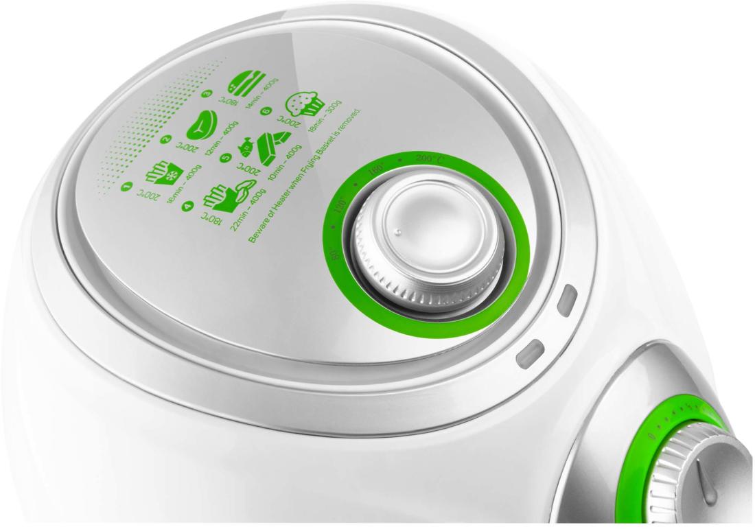 A beépített levegőszűrő csökkenti a szagokat, és megakadályozza, hogy otthonának és ruháinak kellemetlen szaga legyen. Ezen kívül időt takarít meg az edények mosogatásával, mert a kivehető tapadásmentes sütőkosár tisztítása egyetlen konyhai törlőkendővel is elvégezhető.