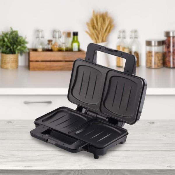A 28,5×15,2 cm-es lemezméret elegendő helyet biztosít a különböző méretű szendvicsek elkészítéséhez. A tapadásmentes fekete titán bevonatú lemez megakadályozza az ételek odatapadását, így a tisztítás is gyerekjáték.