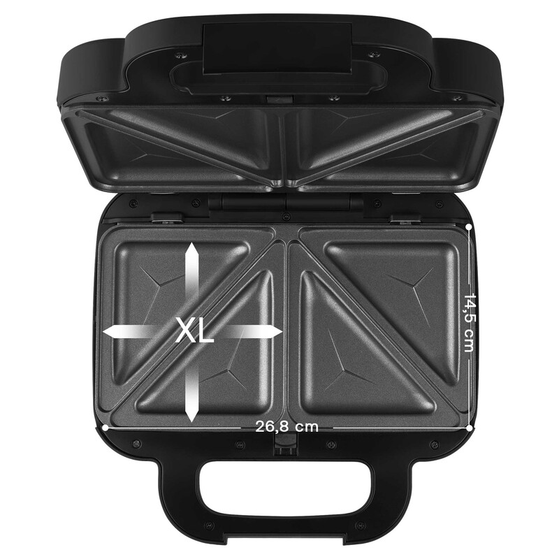 A FlexiSnack XL szendvicssütő nemcsak sokoldalúságával tűnik ki, hanem praktikus kialakításával is. A 268 × 145 milliméteres XL méretű sütőlapok elegendő helyet biztosítanak a nagyobb adagokhoz, így akár a teljes család számára is gyorsan elkészítheted a reggelit vagy a vacsorát. A tapadásmentes felület garantálja, hogy az ételek ne ragadjanak le, és a sütés után a tisztítás néhány mozdulattal elvégezhető legyen. Ez nemcsak kényelmes, de időt és energiát is megtakarít, miközben a konyhád mindig rendezett marad.