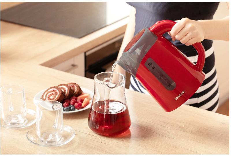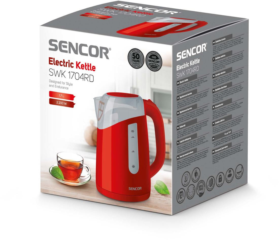 A Sencor SWK 1704RD egy nagy teljesítményű elektromos vízforraló 2200 watt maximális teljesítménnyel, mellyel időt és energiát takaríthat meg. Akár 1,7 liter vizet is képes egyszerre felforralni, így 3-5 fős háztartásokba megfelelő választás. A készülék használatát ergonomikusan kialakított fogantyú teszi kényelmesebbé, valamint a markolatba épített fedélnyitó gomb