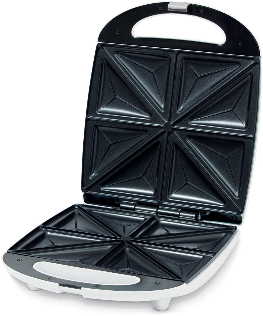 A sütőlapnak köszönhetően egyidejűleg 8 darab háromszög alakú szendvics süthető. A LED jelzőfényeknek köszönhetően a készülék használata szinte gyerekjáték. A felhasználó részére jelzi a melegedési és a sütésre kész állapotot egyaránt. A hideg érintésű felületnek köszönhetően a készülék borítása még használat közben sem forrósodik fel.