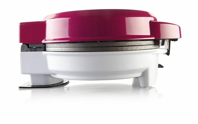 A muffinsütő kijelzi a hőmérsékletet. Csatlakozókábele 1 méter hosszú. Csúszásmentes gumi lábainak köszönhetően biztosan áll az asztalon, konyhaszekrényen. A gofrisütő további előnyös tulajdonságai közé tartozik a hideg fogantyú és a biztonsági zár.
