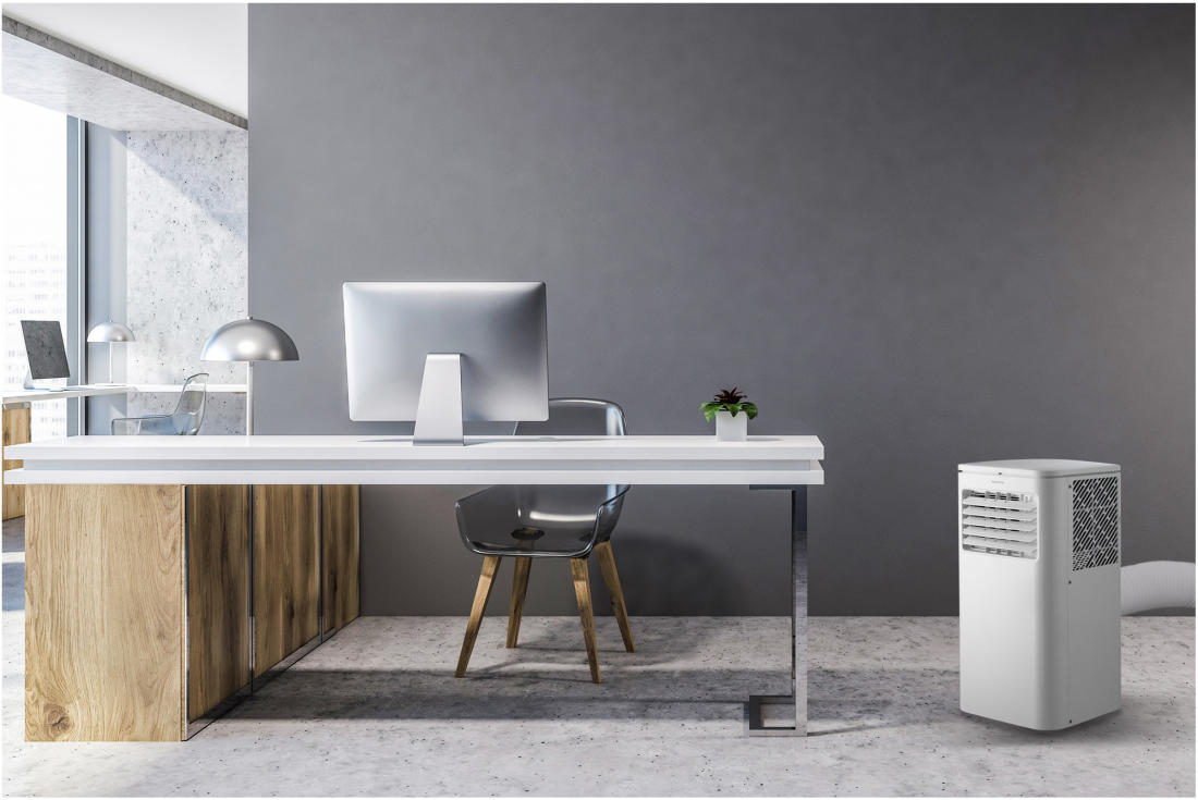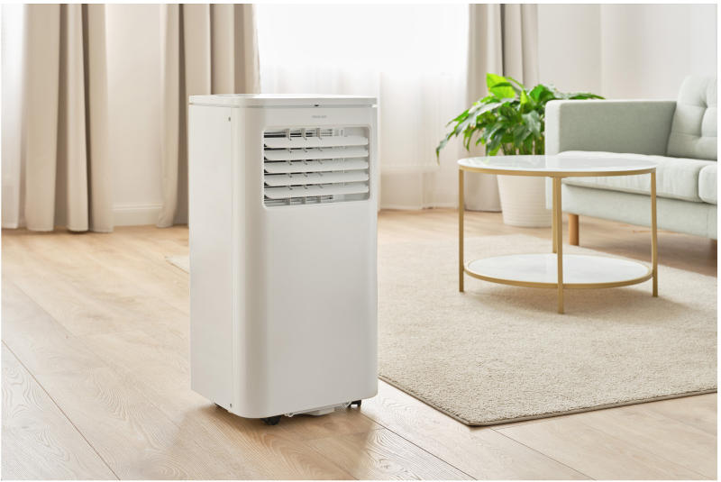 Hűtés üzemmódban, a mobil klímaberendezés biztosítja a 17 és 30 °C között beállítható hőmérsékletet. Páramentesítés üzemmódban könnyű szellővel és friss levegővel frissíti a helyiséget. A levegő keringtetés (ventilátor) üzemmód akkor használható, amikor nem túl forró a kültéri levegő. A ventilátor fordulatszáma könnyű szellőztetésre és intenzív keringtetésre állítható be. A készülék csendes üzemű. A működő készülék zajszintje legfeljebb csak 64 dB(A). A zajteljesítmény magas fordulatszámon 53, alacsony fordulatszámon csak 50 dB(A).